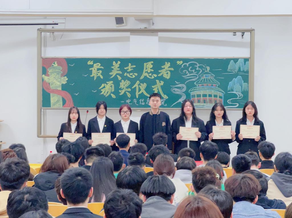 会议最后,与会老师为受到表彰的志愿者进行颁奖,并希望受到表彰的同学们能够再接再厉,充分发挥模范带头作用,同时,号召青年学生要以最美志愿者为榜样,为进一步推动学院发展和建设贡献自己的青春力量。