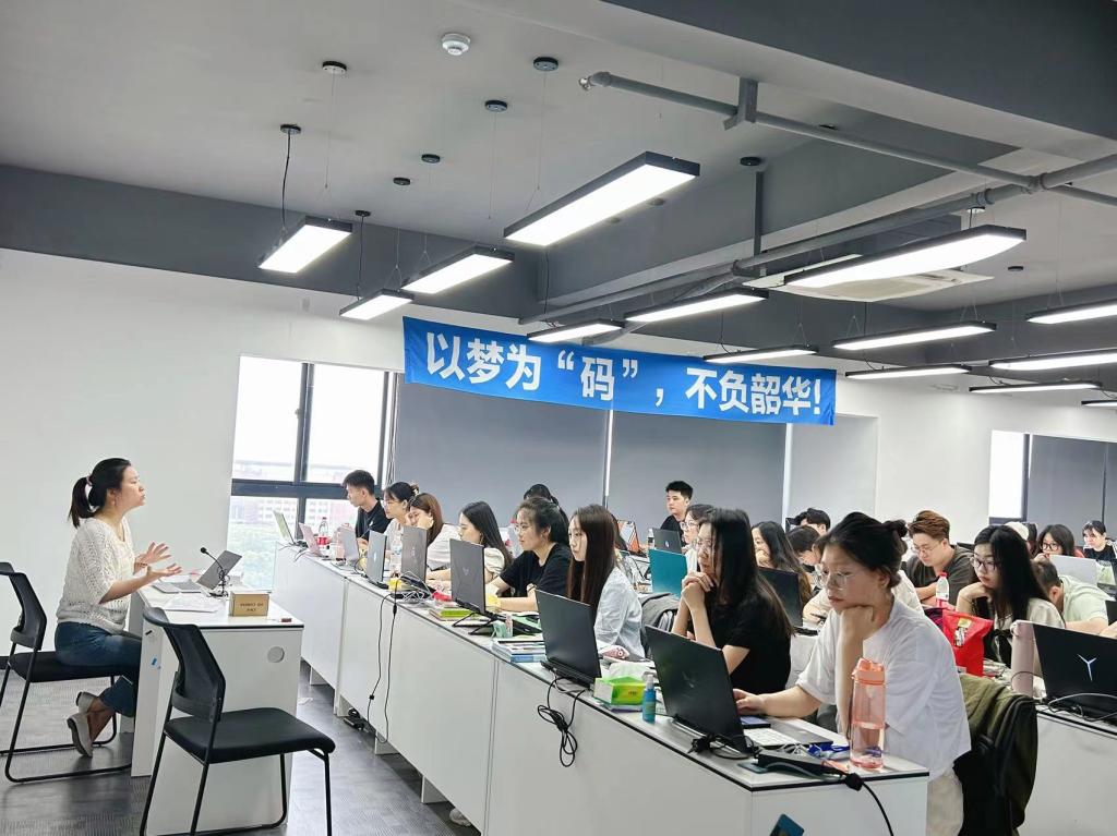 在进行开题答辩前,电子信息工程专业与数字媒体技术专业系主任与企业老师一同在5月20日-21日以线上方式进行了毕业设计开题动员会,细致讲解了毕业设计选题的要求与方向,并部署了毕业设计相关工作安排。随后,由学生自行进行毕业设计选题,由企业老师进行题目初审,由校方老师进行题目二审,审题结束后进行开题答辩工作。6月6日-7日,毕业设计开题答辩采用线上线下相结合的方式进行,电子信息工程专业系主任卢秀和、数字媒体技术专业系主任李倩亲自前往湖州实训基地进行线下答辩,其余在校答辩组老师针对学生汇报内容和开题报告文本内容进行了线上提问,并从选题的实用性、理论依据和内容之间的逻辑关系及研究方法的合理运用等不同方面提出了建设性的意见和建议,帮助同学们进一步明确了研究目标,理清了研究思路,为下一步毕业设计的制作与论文的撰写指明了方向。经过老师们的耐心指导,答辩现场每一位同学都对自己的选题有了更加清晰的理解,提前精心为开题答辩制作了PPT,并主要从研究背景及意义、国内外研究现状、论文研究方法、论文提纲等方面进行了开题论述。