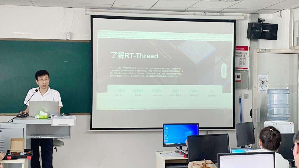 培训会上,上海睿赛德电子科技有限公司罗齐熙老师就RT-thread操作系统大学计划进行了详细介绍。高级工程师李柏峰老师主要围绕RT-thread OS智能小车开发进行了讲解,并针对软件的安装、硬件的测试、终端的调试等方面进行了详细地阐述和说明,参加培训的教师收获颇丰。