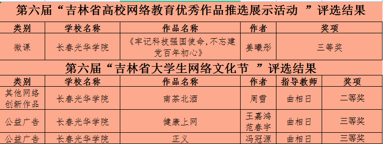 近日,吉林省教育厅公布了第六届“吉林省大学生网络文化节”和“高校网络教育优秀作品推选展示活动”遴选结果。beat365在线唯一官网登录共有4个作品获奖,其中二等奖1项、三等奖3项。