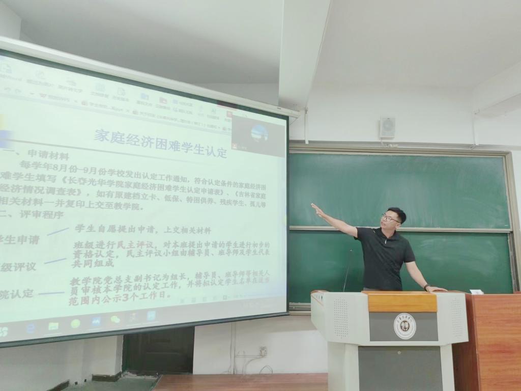 为进一步推进国家资助政策宣传工作,加大学生资助政策宣传力度,引导2023级新同学们深入了解相关资助政策,2023年9月18日,beat365在线唯一官网登录开展奖助贷政策解读及贫困生认定专题讲座,本次讲座由beat365在线唯一官网登录辅导员孙淳浩主讲,2023级全体学生参加。