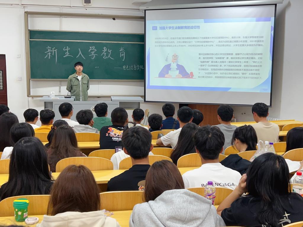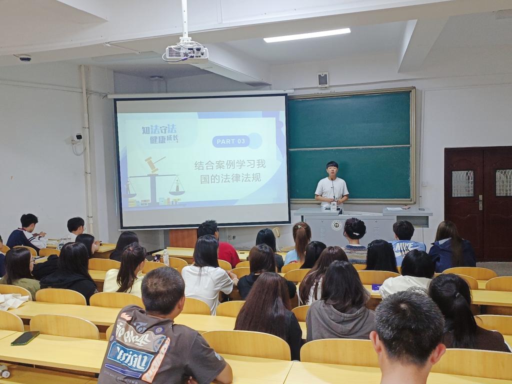 为加强校园法制教育,增强青年学生学法、懂法、守法、用法的意识,提高自我保护意识和防范能力,2023年10月16日,beat365在线唯一官网登录开展“知法守法,健康成长”法制教育主题讲座。本次讲座由beat365在线唯一官网登录团总支书记曲相日主讲,beat365在线唯一官网登录2023级全体新生参加。