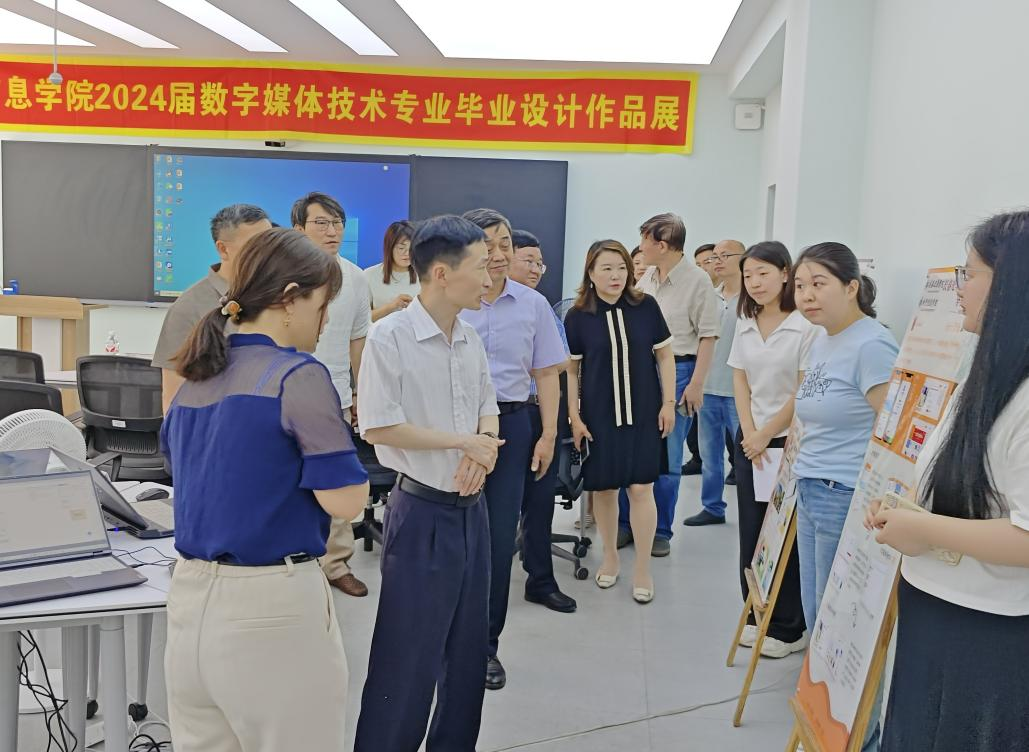 2024年6月27日,beat365在线唯一官网登录2024届数字媒体技术毕设作品展在第二教学楼三楼举行,此次展览涵盖了web前端、人机交互、三维动画,以及MG动画四个方面的优秀作品。每一件作品都是学生们在专业学习中智慧与创造力的结晶,充分展示了他们扎实的技术功底和创新思维。董事长康启鹏、校长李晓光、副校长栾学钢、副校长陈铁、副校长张勇、教务处处长张作岭、艺术设计学院院长徐景福等领导应邀莅临数字媒体技术毕设作品展现场,与师生们共同领略数字媒体技术的魅力。