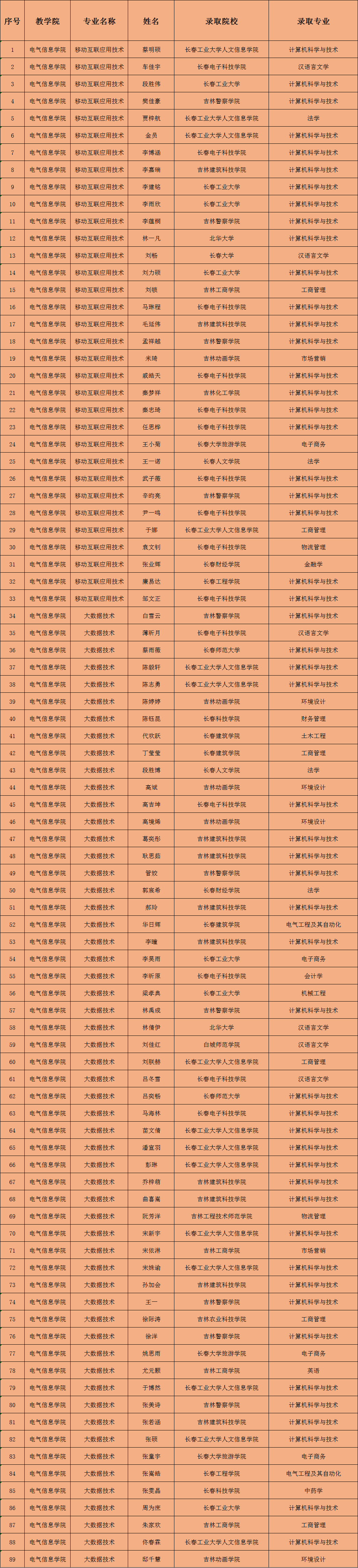 近日,2025年吉林省普通高校专升本教育考试录取结果公布,beat365在线唯一官网登录2025届专科毕业生(大数据技术专业、移动互联应用技术专业)共有89名学生分别被长春师范大学、北华大学、长春工业大学等高校录取。