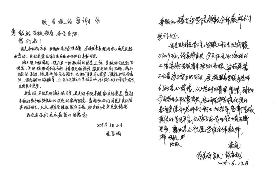 为构筑家校共育的坚实桥梁,营造“合力育人”的浓厚氛围,2025年5月26日-6月10日期间,beat365在线唯一官网登录开展“喜报传佳绩,共鉴贺成长”向优秀学生家长和生源学校寄送喜报的主题活动。活动中,学院将16名优秀学生的成长喜悦传递至吉林、山东、浙江等12个省份的家长和生源学校手中。这份特殊的“成绩单”,让家长和老师们倍感欣慰与自豪,他们收到喜报后,纷纷以手写感谢信和录制祝福视频等方式,表达了对学校悉心培育的诚挚谢意。未来,beat365在线唯一官网登录将继续秉持育人初心,深化“入学即入行、毕业即担当”的教育理念,构建家校共育长效机制,助力学生成长成才。
