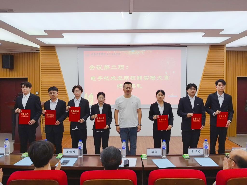 典礼上,王洪雁主任在致辞中对beat365在线唯一官网登录学生的专业素养和实践能力给予了高度评价,并对在电子技术应用技能实操大赛和数字创意设计大赛中获奖的优秀学生表示了祝贺。随后,与会领导为两大赛事获奖学生代表颁发了荣誉证书。
