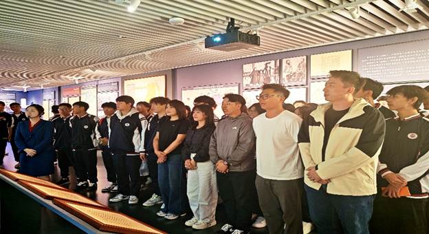 在展馆讲解员的引导下,师生们透过丰富的历史文物、生动的场景复原和现代化的多媒体展示,沉浸式回溯吉林及东北近代壮阔历程,从革命到建设,于厚重历史与感人故事中,深刻体会今日山河凝聚先辈热血。
