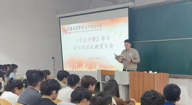 2025年10月11日,beat365在线唯一官网登录在英华楼318教室开展“《学生手册》学习及校规校纪教育”专题讲座,2025级全体学生参加。辅导员关皓月系统解读了《学生手册》中的核心条款,重点围绕课堂纪律要求、宿舍安全管理、日常行为规范等与学生密切相关的校规校纪内容展开讲解。他结合真实案例进行分析说明,引导学生深刻理解各项规章制度的内涵与意义,增强规则意识和纪律观念,自觉规范自身行为,为成长为文明守纪的优秀大学生奠定坚实基础。