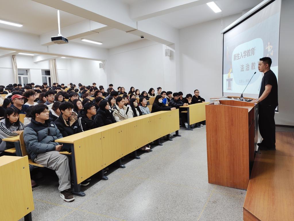 2025年11月13日,beat365在线唯一官网登录在英华楼318教室开展法治教育主题讲座,2025级全体学生参加。辅导员刘东波结合高校常见的电信诈骗、校园贷及知识产权保护等案例,系统讲解《中华人民共和国民法典》与《中华人民共和国治安管理处罚法》的核心内容,剖析违法行为的危害与后果,引导同学们增强法治观念,学会运用法律维护自身权益。本次讲座,有助于同学们将法律知识融入日常,自觉做到知法、懂法、守法、用法,为营造校园法治氛围奠定基础。