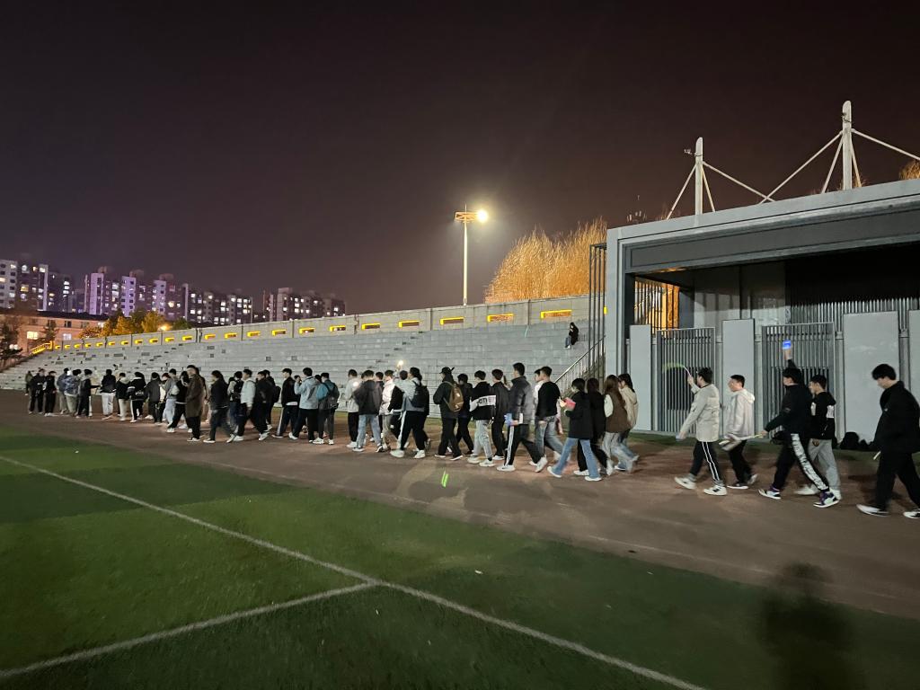 活动中,养成教育体育锻炼小组负责人为每一位参与夜跑的同学发放了荧光手环、荧光眼镜等物品,五彩缤纷的荧光棒随着摆动的手臂在田径场上挥舞闪耀,同学们在荧光中欢乐奔跑,为光华园注入了青春的活力,充分展现了当代大学生的青春风貌。
