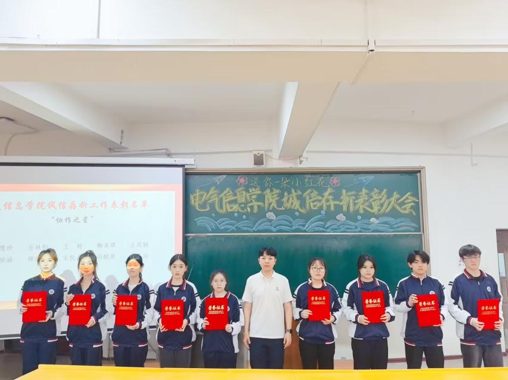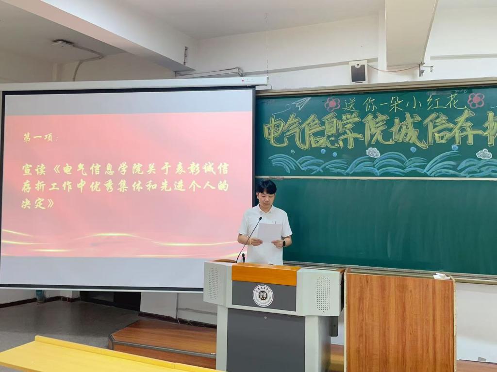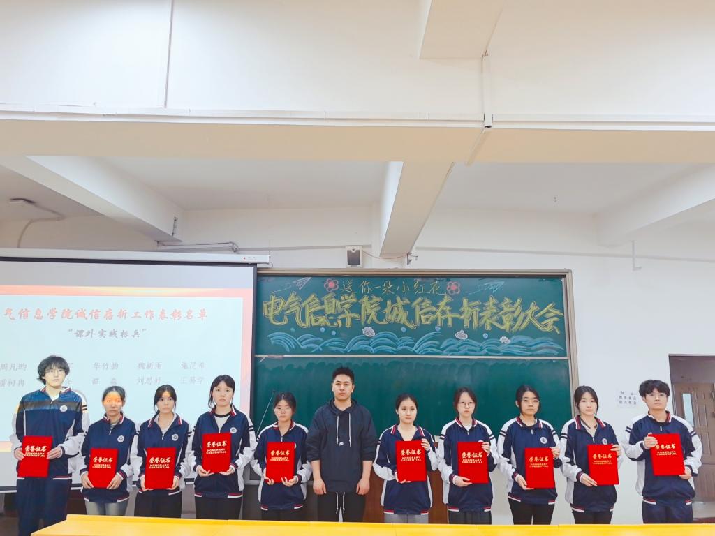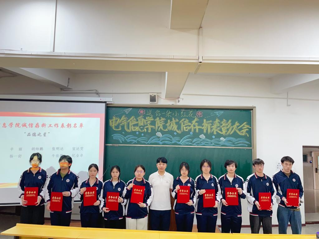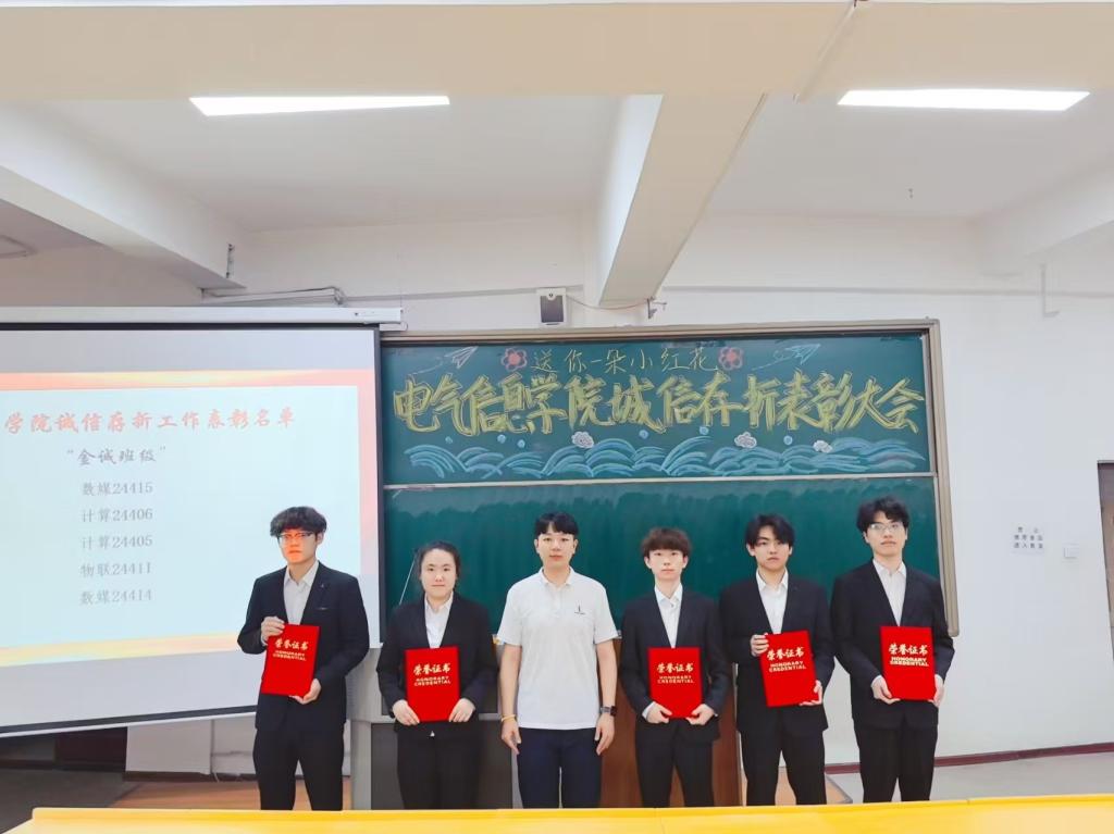 2025年6月27日,beat365在线唯一官网登录召开“送你一朵小红花”诚信存折表彰大会。大会由beat365在线唯一官网登录团总支书记曲相日主持,辅导员刘东波及2024级全体学生参加。本次表彰大会共设立“诚信之星”、“品德之星”、“协作之星”、“课外实践标兵”及“金诚班级”5项荣誉,40名优秀个人和5个先进集体获此殊荣。本次表彰大会,以“诚信存折”为载体,通过表彰先进典型、分享成长故事等形式,生动展现了诚信积累的丰硕成果,激发了青年学生的内生动力,有效促进了诚信价值从个人自觉向集体风尚的深度转化,使诚信真正融入了青年学生的日常学习和生活。