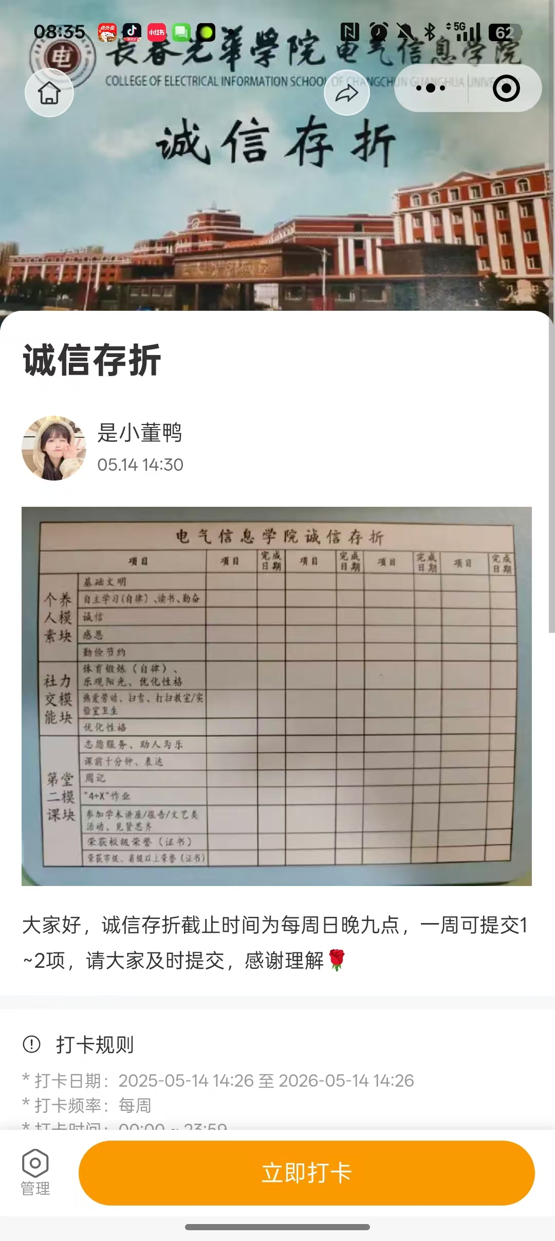2025年3月起,beat365在线唯一官网登录电子版“诚信存折”正式上线。这一创新举措标志着学生日常行为管理进入新阶段。该系统通过移动端和电脑端的便捷操作,为同学们提供实时记录的自我管理平台。同学们可通过电子存折随时记录个人素养、社交能力、第二课堂等模块,与传统的纸质存折记录相比,电子存折具有操作便捷、记录即时、数据可追溯等优势。电子版“诚信存折”的正式上线,不仅便于同学们进行自我监督、自我管理,更为定期复盘提供了可靠依据。