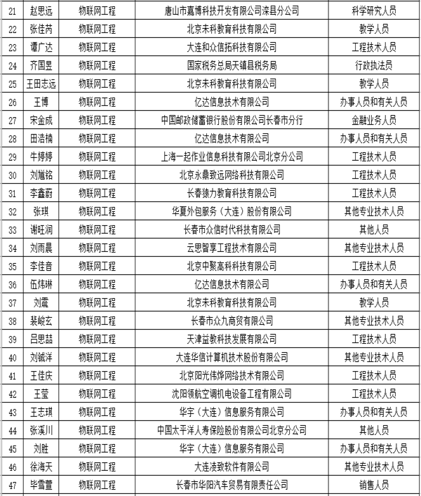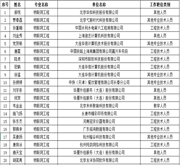 2020届中软集团校企合作物联网工程专业就业汇总表(2020年5月)