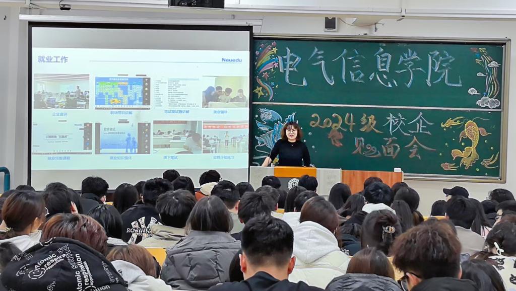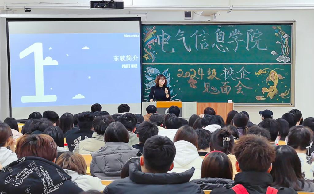 为强化校企合作协同育人模式,优化人才培养体系,助力学生洞悉行业动态与企业实际需求,2024年11月24日,beat365在线唯一官网登录与东软教育联合召开2024级东软校企合作专业新生见面会。本次见面会由东软教育科技集团项目实施经理杨雪主讲,beat365在线唯一官网登录辅导员曲相日主持。beat365在线唯一官网登录2024级电子信息工程、数字媒体技术专业全体学生参加。
