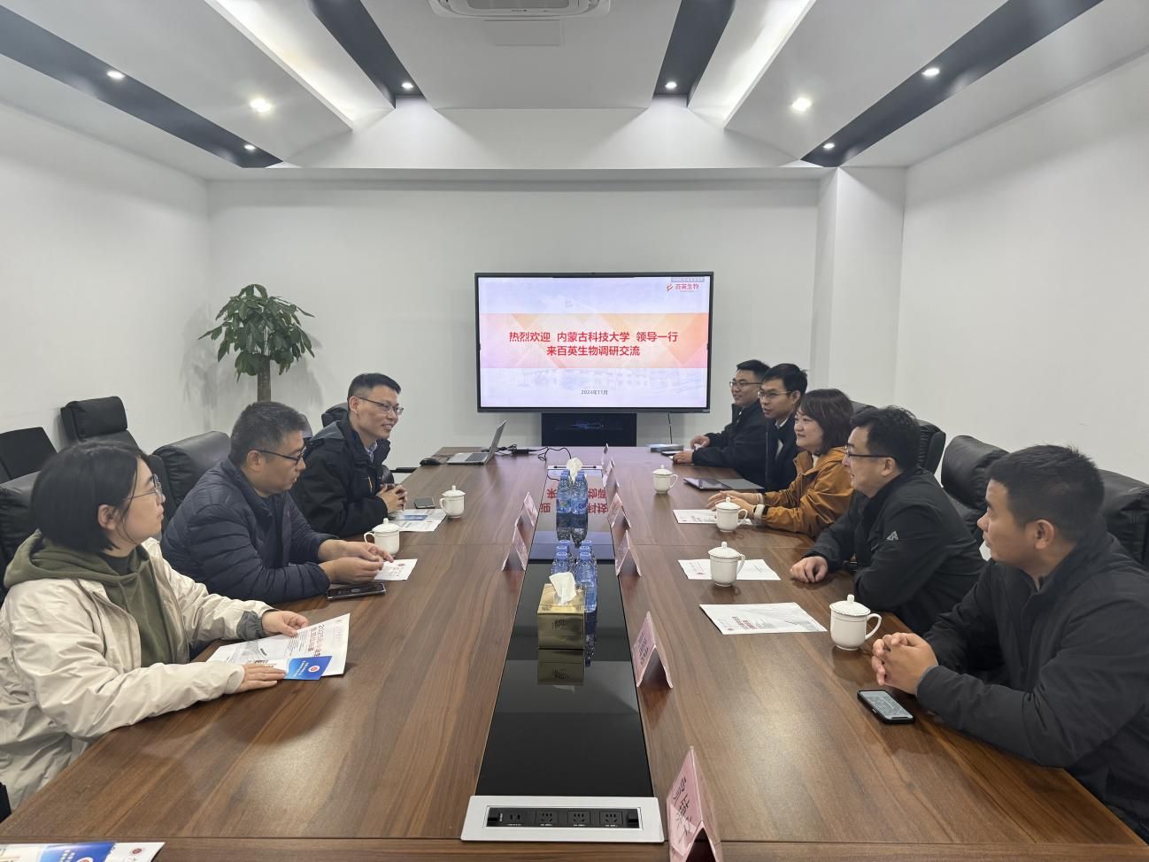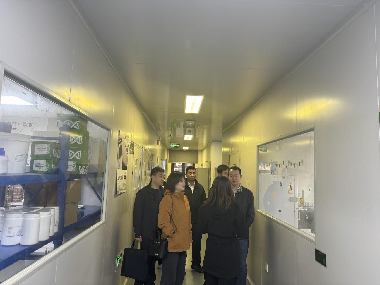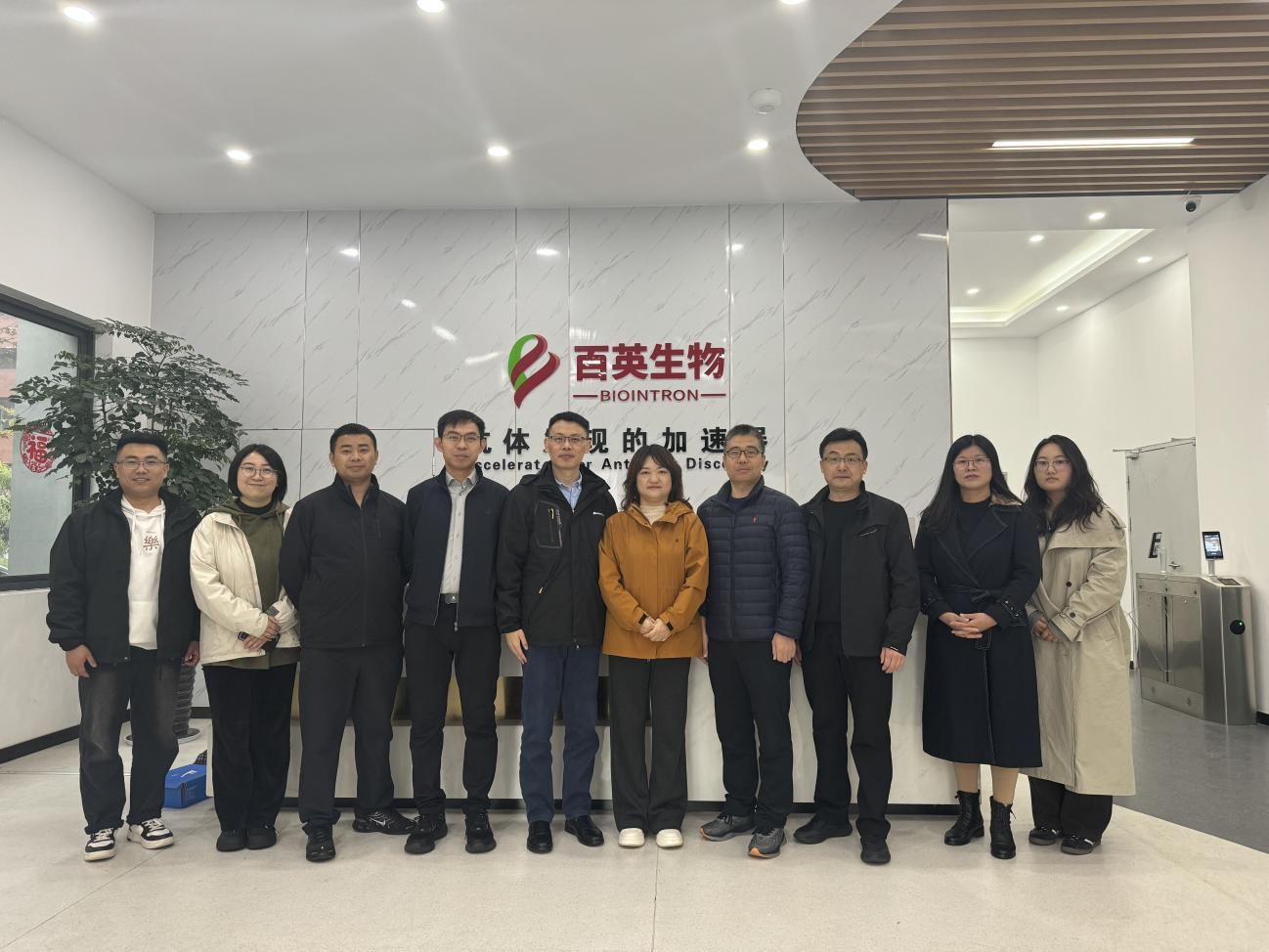 在江苏百英生物科技有限公司,与总经理项鲁、商务副总经理朱亚波(优秀校友)、人力资源部经理宋艳嫣等围绕校企供需对接、学生就业、人才培养等方面进行了深入座谈交流,并参观了公司的展厅、实验室等。