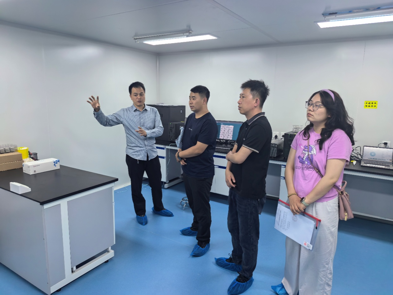 在武汉康测科技有限公司,孟虎一行首先听取了科服总经理张银对公司发展历程及核心业务的介绍。作为国内基因测序与生物大数据分析的领军企业,康测科技已建成覆盖基因组学、转录组学的全流程技术平台,其临床级测序服务在肿瘤早筛领域处于行业前列。随后,实地参观了康测高通量测序实验室,展示了从样本制备到数据解析的全链条操作流程,强调“生物信息学算法在提升测序精度中的关键作用”。