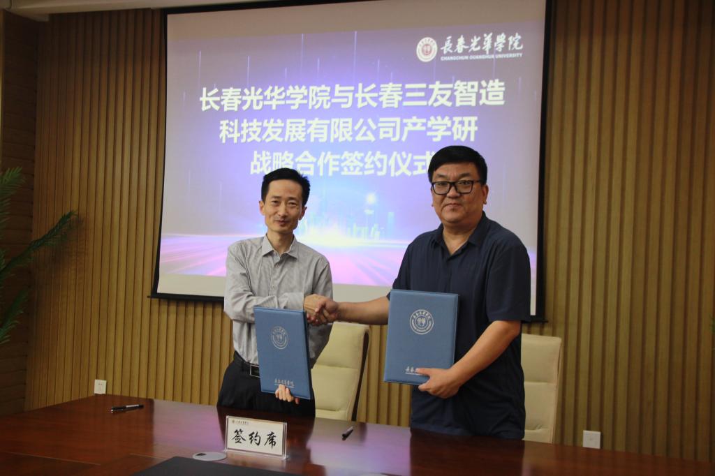 为贯彻落实党中央、国务院关于国家中长期科学和技术发展的决策部署,推进吉林省高校与企业强化创新合作,促进创新链产业链深度融合,长春光华学院与长春三友智造科技发展有限公司于2022年9月签订产学研战略合作协议,开展深度校企合作。