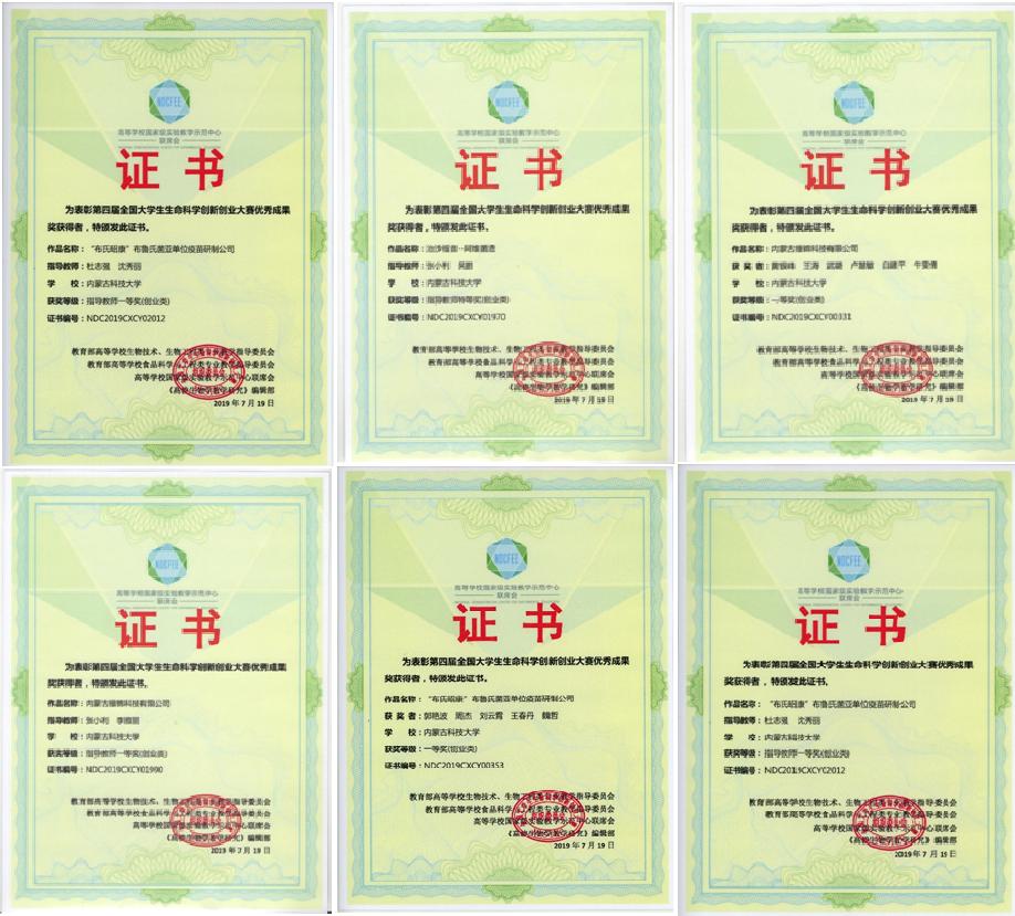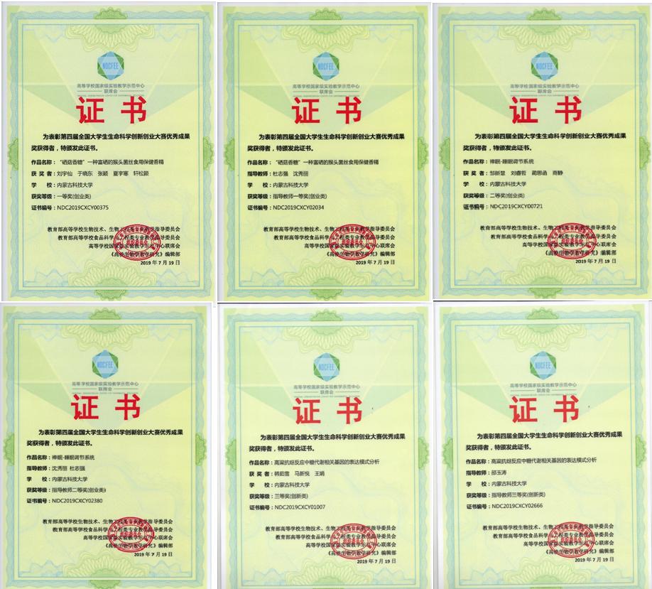 2019年07月19日,第四届全国大学生生命科学创新创业大赛在吉林大学落幕,开云官网有六个创业类项目在3987个参赛项目中脱颖而出,获得特等奖1项,一等奖3项,二等奖1项,三等奖1项。其中冯宇娜、郑江、丁伟荣、刘惠敏、郑昊天、白钰等参赛的《治沙福音——阿维菌渣》项目获得特等奖,张小利和吴鹏获得指导老师特等奖;黄银峰、王涛、武璐、卢慧敏、白建平、牛雯倩等参赛的《内蒙古维锦生物科技有限公司》项目获得一等奖,张小利和李雅丽获得指导老师一等奖;郭艳波、周杰、刘云霄、王春丹、魏哲等参赛的《“布氏昭康”布鲁氏菌亚单位疫苗研制公司》项目获得一等奖,杜志强和沈秀丽获得指导老师一等奖;刘宇仙、于晓东、张颖、夏宇寒、轩松颖等参赛的《“硒菇香糖”一种富硒的猴头菌丝食用保健香精》项目获得一等奖,杜志强和沈秀丽获得指导老师一等奖;邹新慧、刘睿哲、蔺思函、商静等参赛的《禅眠-睡眠调节系统》项目获得二等奖,沈秀丽和杜志强获得指导老师二等奖;韩茹雪、马新悦、王娟等参赛的《高粱抗蚜反应中糖代谢相关基因的表达模式分析》项目获得三等奖,邵玉涛获得指导老师三等奖。开云官网kaiyun开云官方网站获得“优秀组织单位”称号。