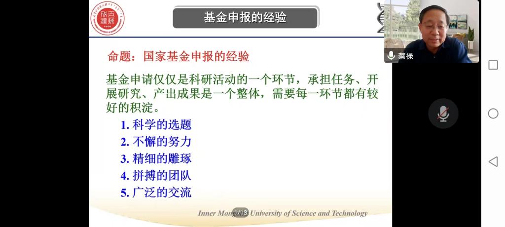 11月24日,kaiyun开云官方网站邀请学校学术委员会副主任委员蔡禄教授作了题为《国家自然科学基金从入门到进阶》的专题报告,报告会由王国泽院长主持,开云官网及兄弟学院师生100余人在线上聆听了报告。