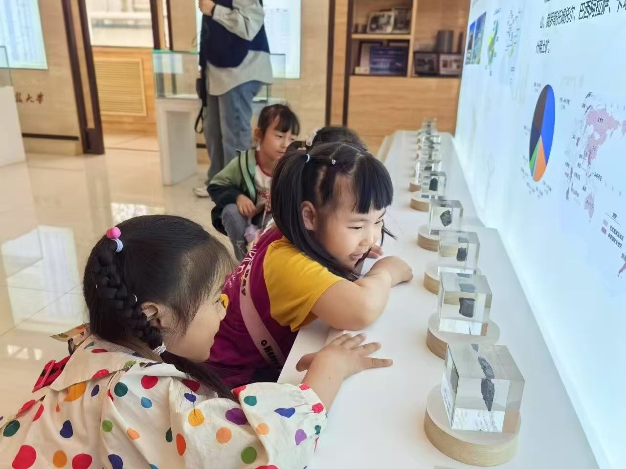 走进稀土产业学院的稀土产品展示厅,就像踏入了一个五彩斑斓的科学世界。赵烨老师如同知识渊博的导游,带领孩子们探索“工业维生素”稀土的奇妙应用。那些色彩斑斓的稀土矿石标本和互动模型,在赵老师的讲解下,成为了打开孩子们科学兴趣之门的钥匙。孩子们了解到稀土在电子设备、环保材料等众多领域的神奇作用,一个个眼神中满是对稀土元素“七十二变”的好奇与向往,探索科学的种子在他们心中悄然种下。