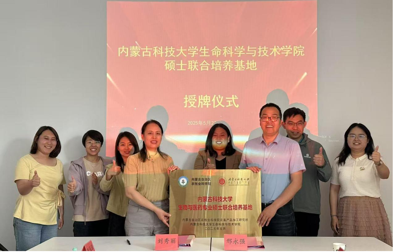 药食同源研发赋能农牧产业:校企合作共建研究生联合培养基地。5月24日,农产品加工与贮藏团队负责人王国泽教授带队前往包头市固阳县龙驹农牧业科技有限公司进行调研交流,双方签署了研究生联合培养协议。